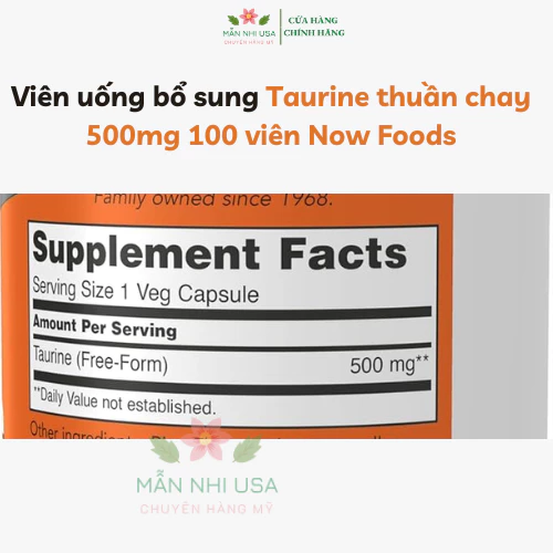 Viên uống Taurine – hàm lượng 500mg 1000mg 100 viên Now foods.