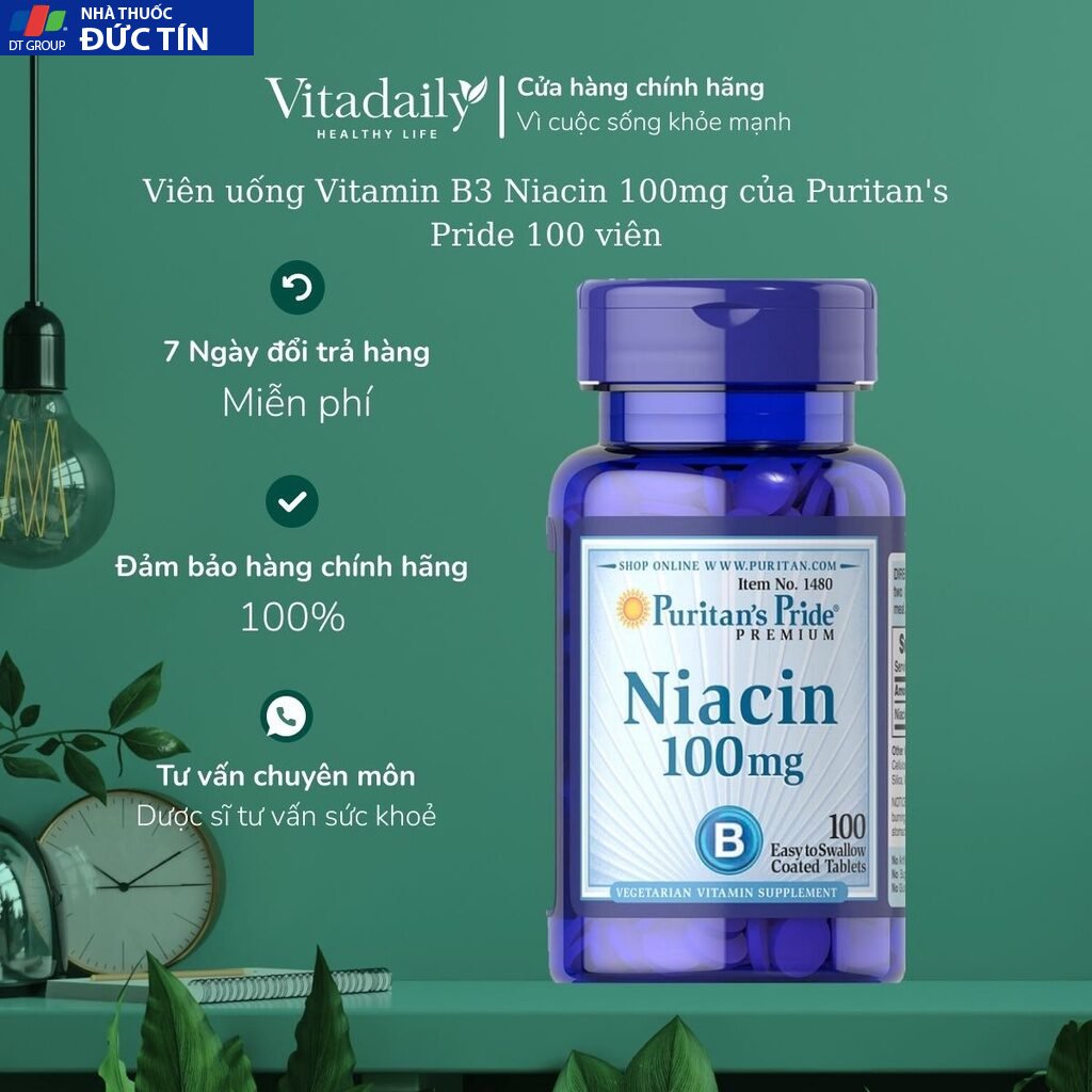 Niacin 100mg là thực phẩm chức năng cung cấp lượng vitamin B3 cần thiết cho cơ thể được sản xuất bởi hãng Puritan’s Pride. Puritan’s Pride là công ty thành viên của Tập đoàn NBTY – 1 trong 4 tập đoàn sản xuất và phân phối thực phẩm chức năng/ thực phẩm bảo vệ sức khỏe (Health Supplements) lớn nhất tại Mỹ và trên thế giới.