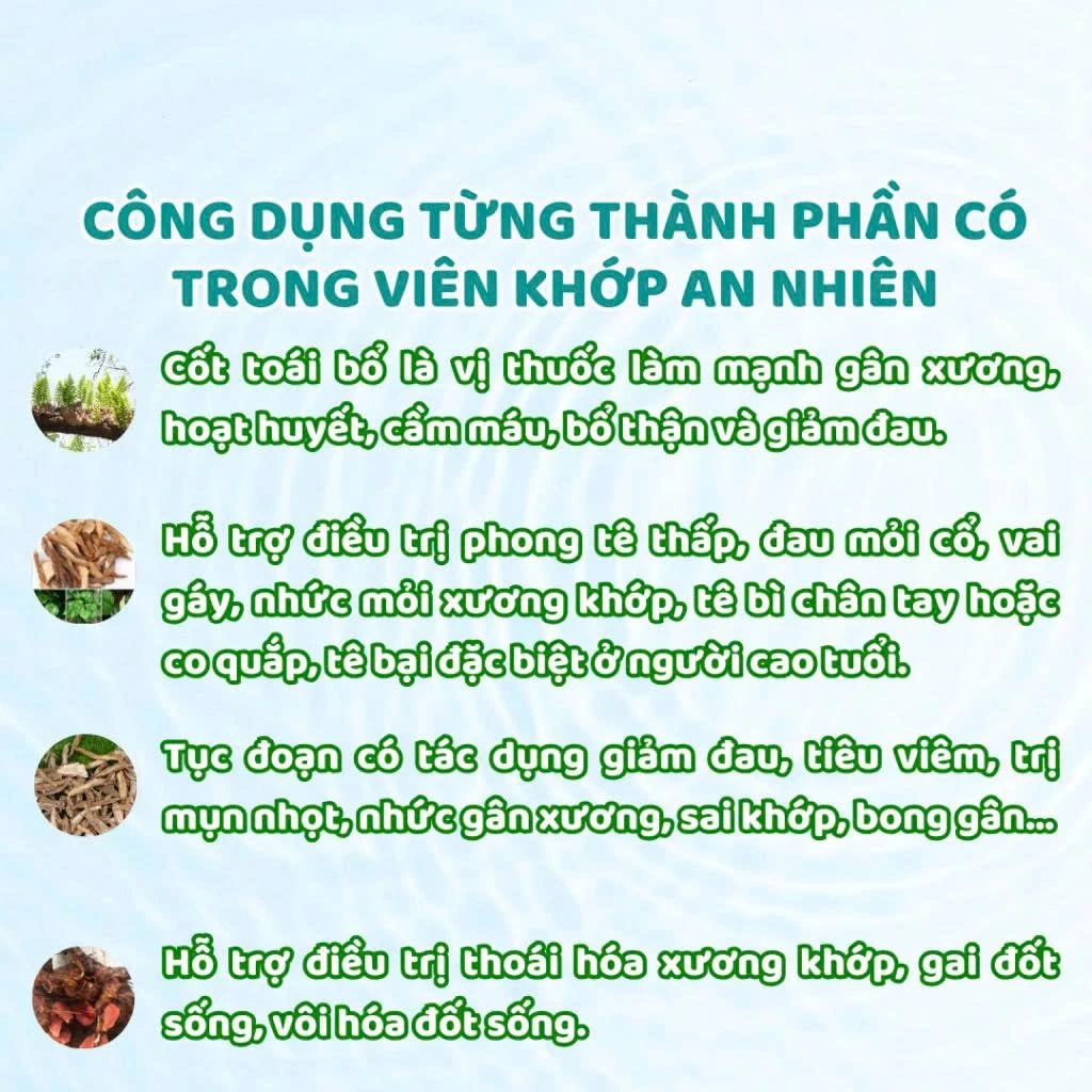 Đánh giá Viên uống xương khớp thổ phục linh cốt toái bổ thoát vị đĩa đệm đốt sống lưng viêm khớp An Nhiên Chính Hãng