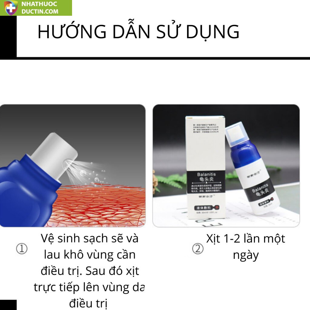 cách dùng: vệ sinh sạch vùng bị bênh sau đó lau khô rồi xịt dung dịch balanitis lên.ngày 2 lần