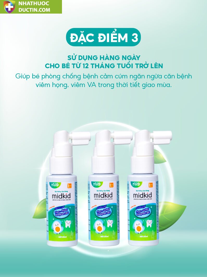 – Xịt trực tiếp Midkid vào chân răng và các bề mặt răng sẽ giúp làm sạch và bảo vệ men răng và khoang miệng