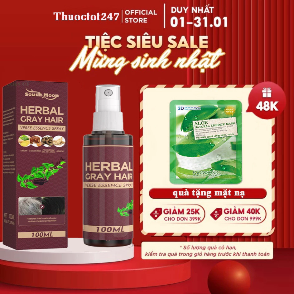 Đánh giá Xịt đen tóc Herbal, tinh chất linh chi đen tóc Herbal, Herbal gray hair, serum phủ bạc làm đen tóc an toàn 100ml
