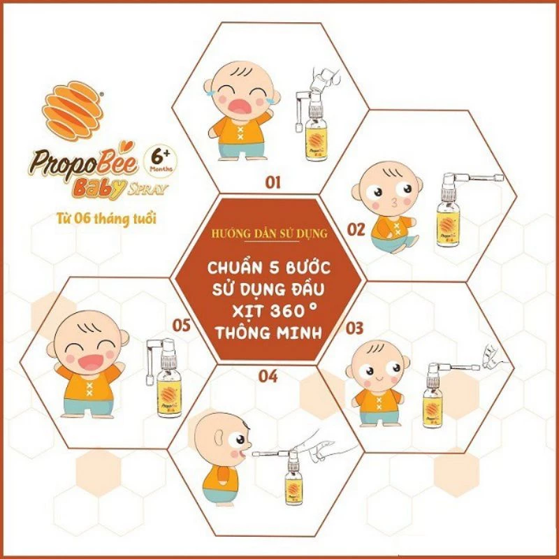 Dùng cho trẻ từ 6 tháng tuổi: Xịt trực tiếp vào khoang miệng, mỗi lần xịt 2-4 nhát (tương đương 0,25-0,5 ml/lần), mỗi 1-2 giờ xịt 1 lần hoặc mỗi khi có cơn ho. Có thể giảm số lần xịt theo mức độ thuyên giảm của bệnh.