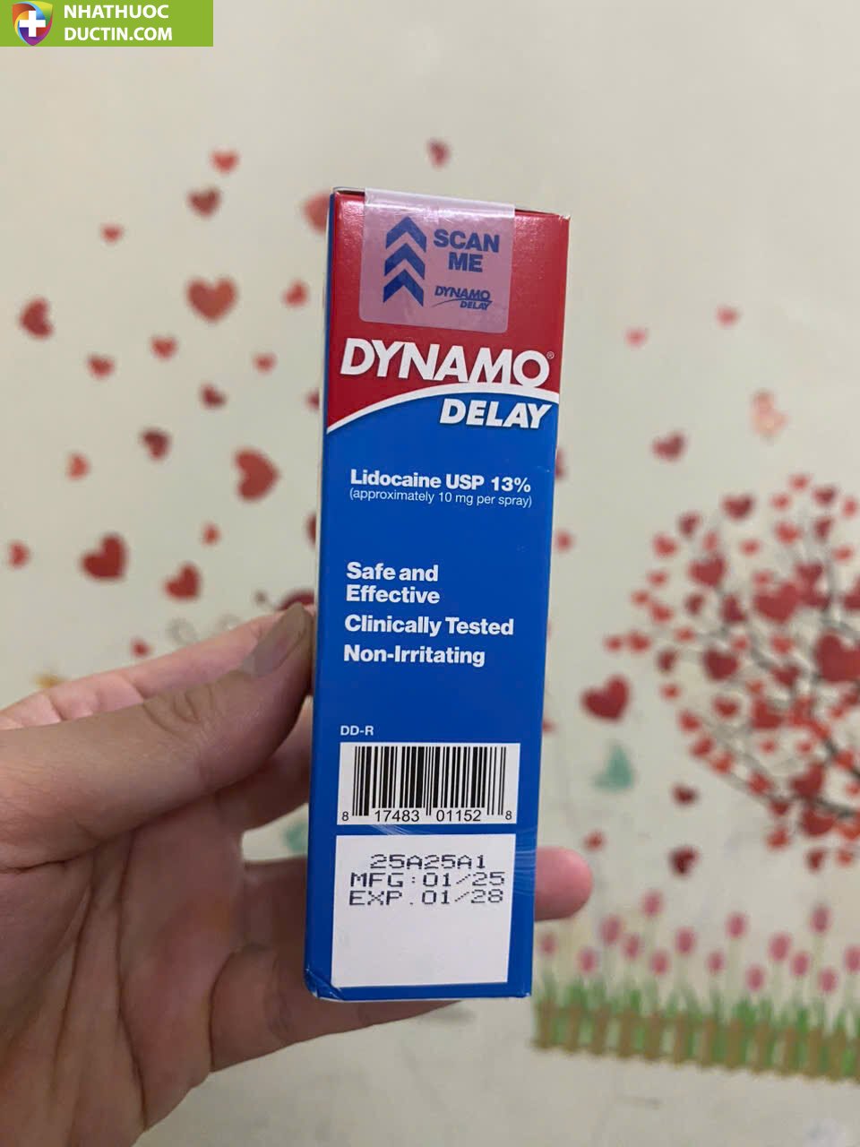 Chai xịt Dynamo Delay là một sản phẩm hỗ trợ chống xuất tinh sớm của Mỹ. Công dụng của sản phẩm là cải thiện cả thời gian và chất lượng mỗi cuộc “yêu” của những quý ông đang gặp phải vấn đề rối loạn xuất tinh, kém hứng thú khi quan hệ. Chai xịt Dynamo Delay được đánh giá có độ an toàn cao, không gây kích ứng cho người sử dụng. Đặc biệt, thiết kế dạng xịt nhỏ gọn rất tiện lợi cho các quý ông mang theo bên mình.