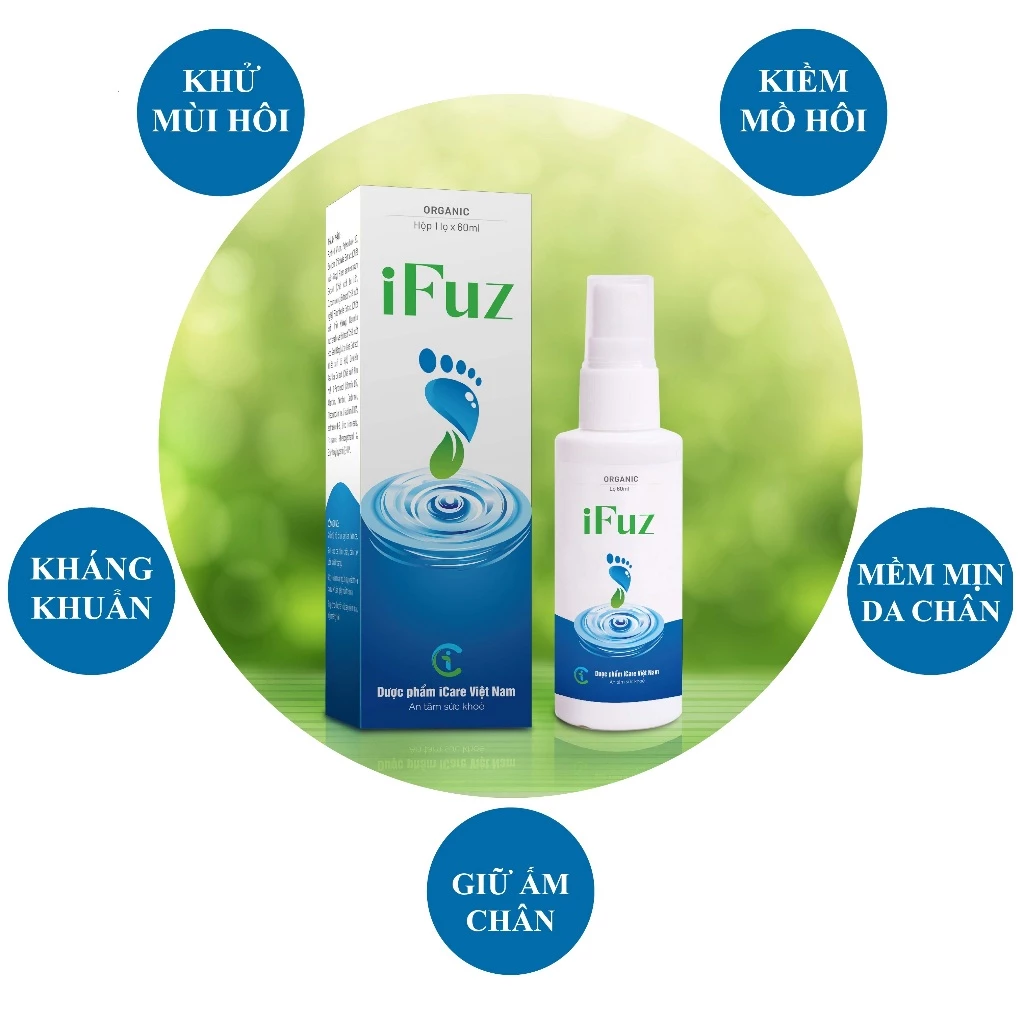 Xịt khử mùi hôi chân và giày iFuz 60ml hữu cơ là sản phẩm chính hãng Dược phẩm iCare Việt Nam, được chiết xuất hoàn toàn từ thảo dược thiên nhiên, an toàn, lành tính, hiệu quả nhanh, tác dụng kéo dài.