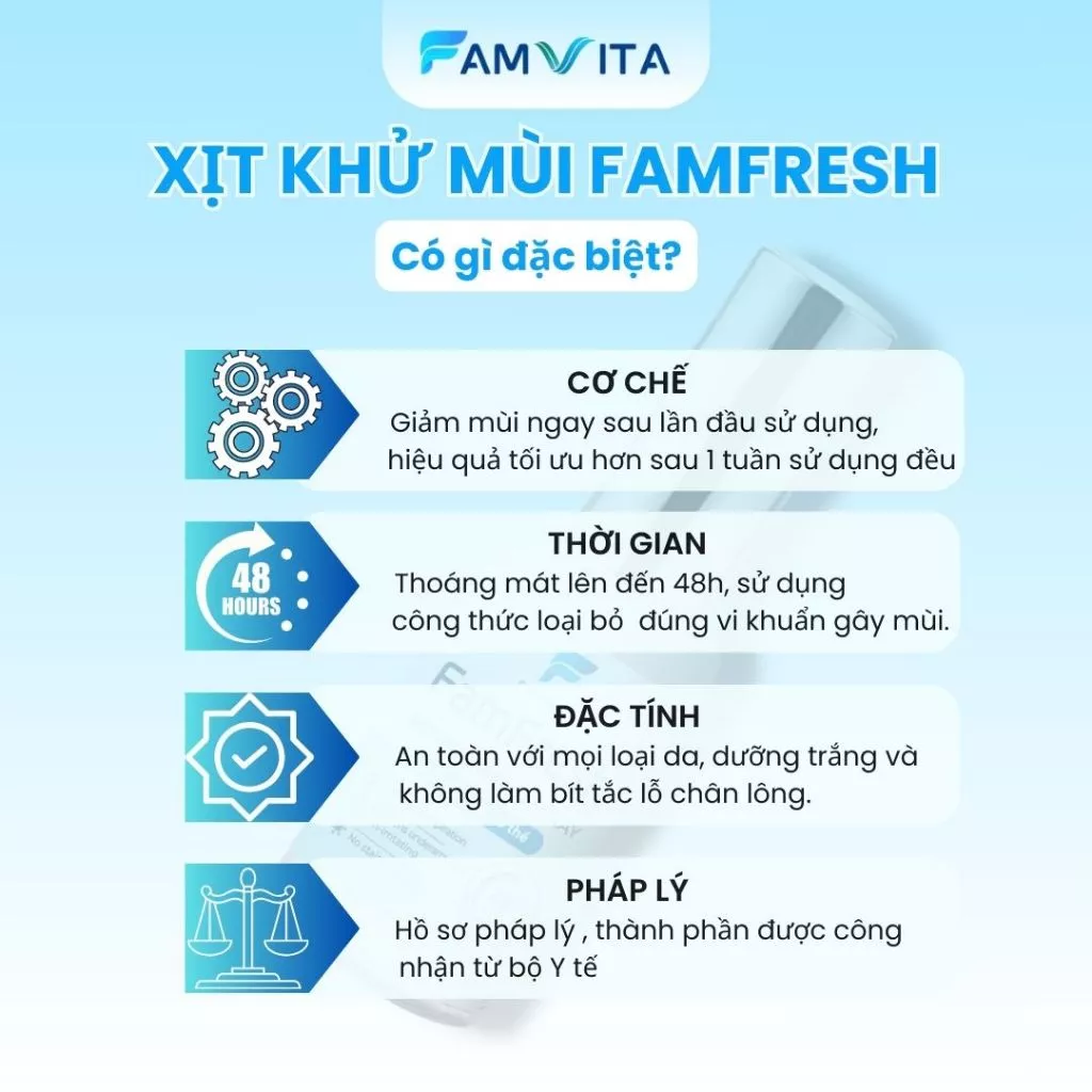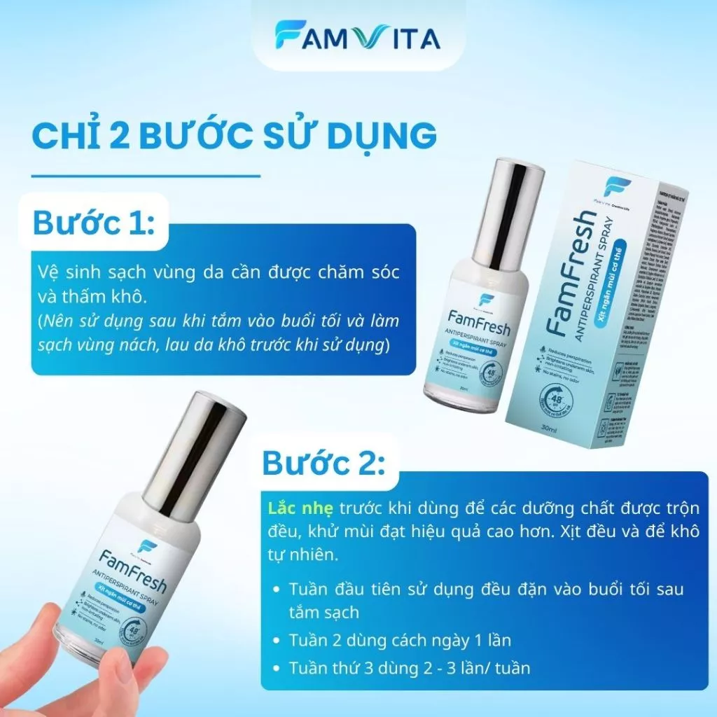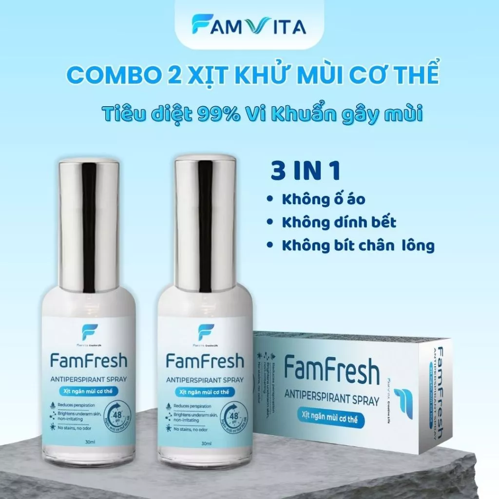 Xịt Khử Mùi hôi nách, chân FamFresh, khử mùi hôi cơ thể nam nữ, không dính bết, không ố áo, hiệu quả 48 giờ – 30ml