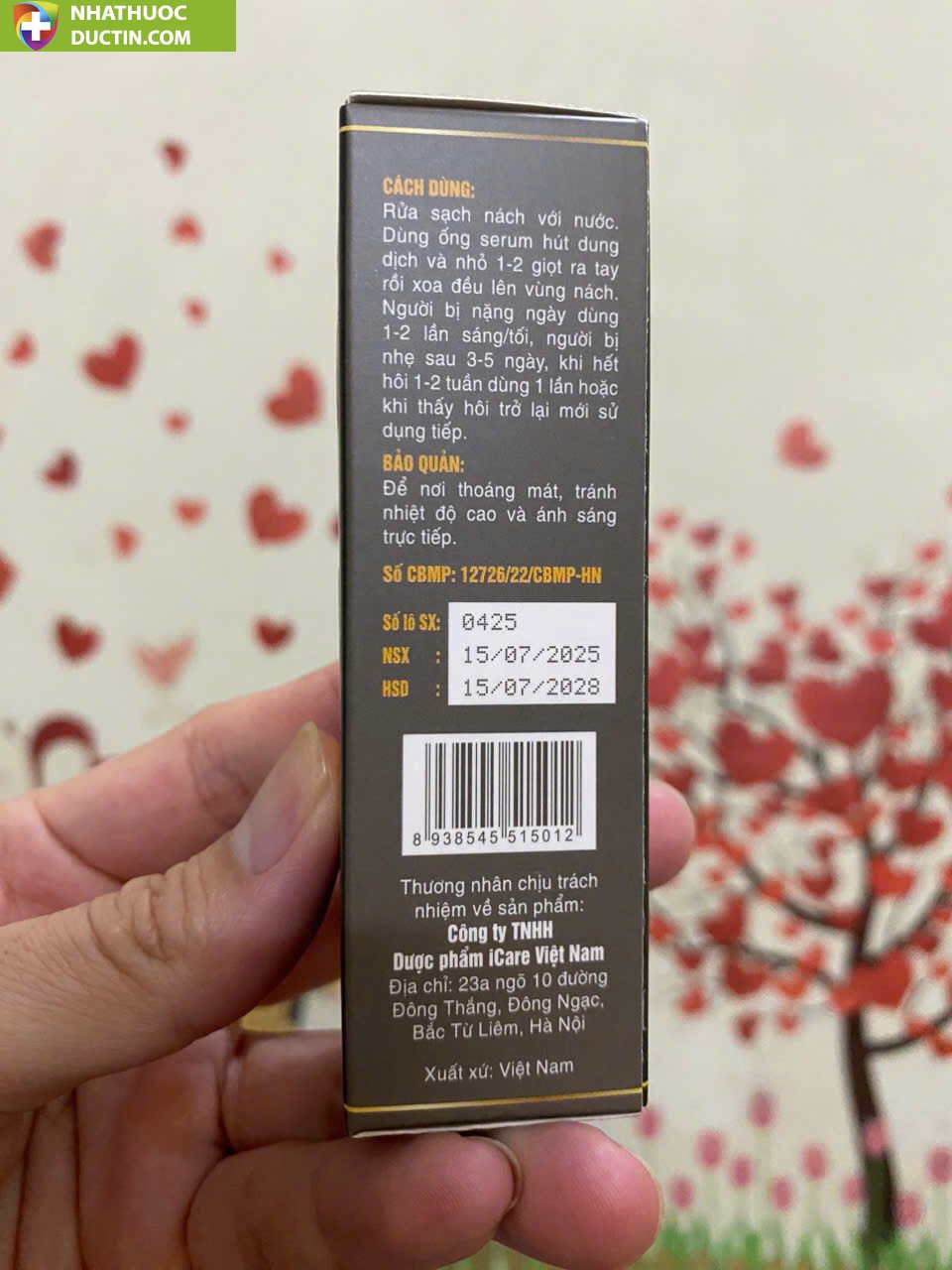 Cách dùng: Rửa sạch nách với nước rồi lau khô, dùng ống serum hút dung dịch và nhỏ 1-2 giọt ra tay rồi xoa đều lên vùng nách. Người bị nặng ngày dùng 1-2 lần sáng/tối, người bị nhẹ sau 3-5 ngày, khi đỡ hôi thì khi thấy hôi trở lại mới cần sử dụng tiếp, tần suất sử dụng tùy cơ địa từng người.