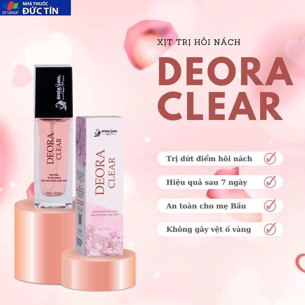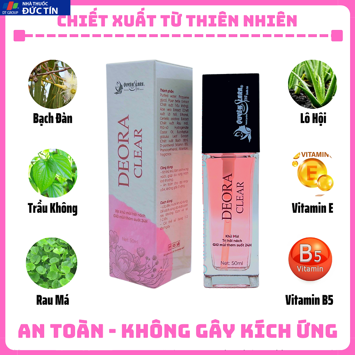 Xịt Khử Mùi Hương Nước Hoa Deora Clear là sản phẩm xịt khử mùi dành cho nách đến từ thương hiệu Lancej Việt Nhật, giúp kiểm soát tuyến mồ hôi, ngăn ngừa và khử mùi hôi chân lên tới 48h. Đặc biệt với chiết xuất hoàn toàn thảo dược dự nhiên an toàn, không chứa cồn, không chứa paraben và parfume nên bạn hoàn toàn có thể an tâm khi sử dụng
