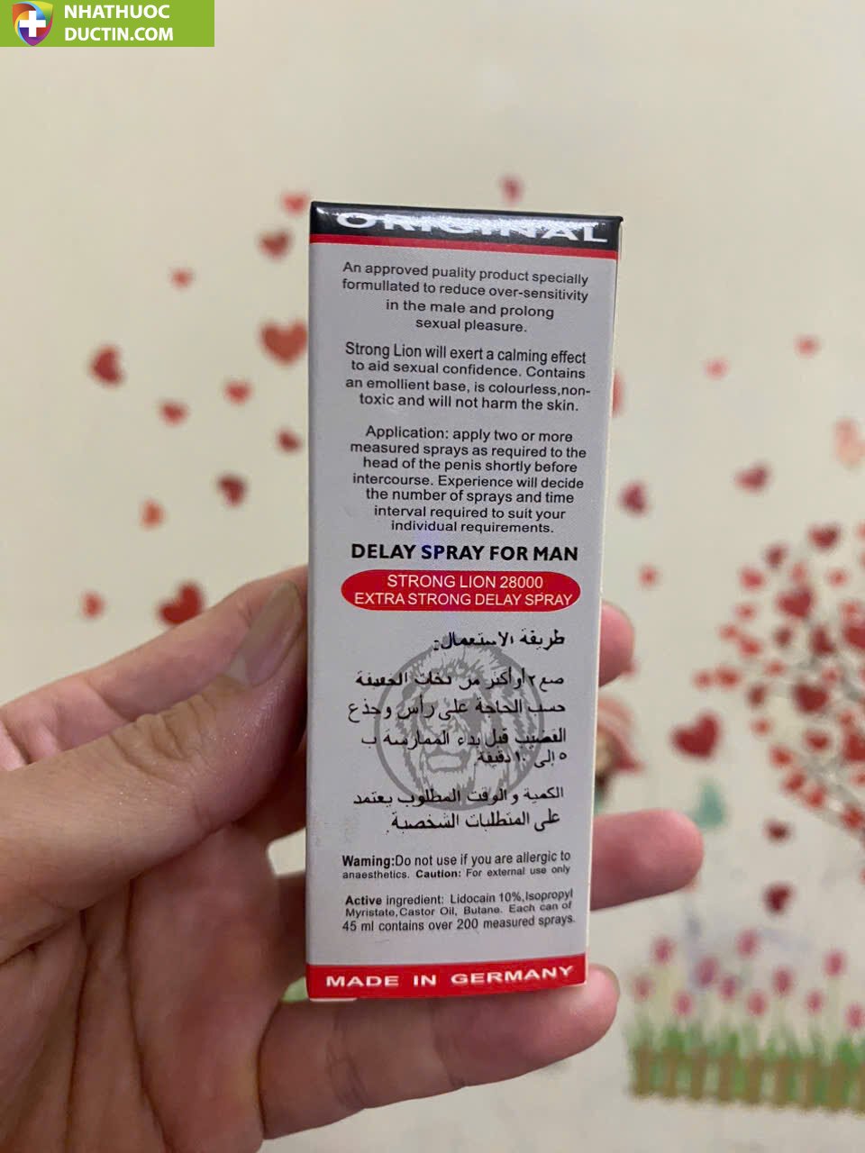 Mô tả sản phẩm: Xịt Strong Lion Power Sư Tử 28000 là giải pháp hoàn hảo dành cho nam giới đang gặp phải tình trạng xuất tinh sớm, giúp tăng cường sự tự tin và trải nghiệm tình dục. Với công thức độc đáo và hiệu quả, sản phẩm này không chỉ giúp trì hoãn xuất tinh mà còn mang lại cảm giác thoải mái và tăng cường khoái cảm cho cả hai đối tác.