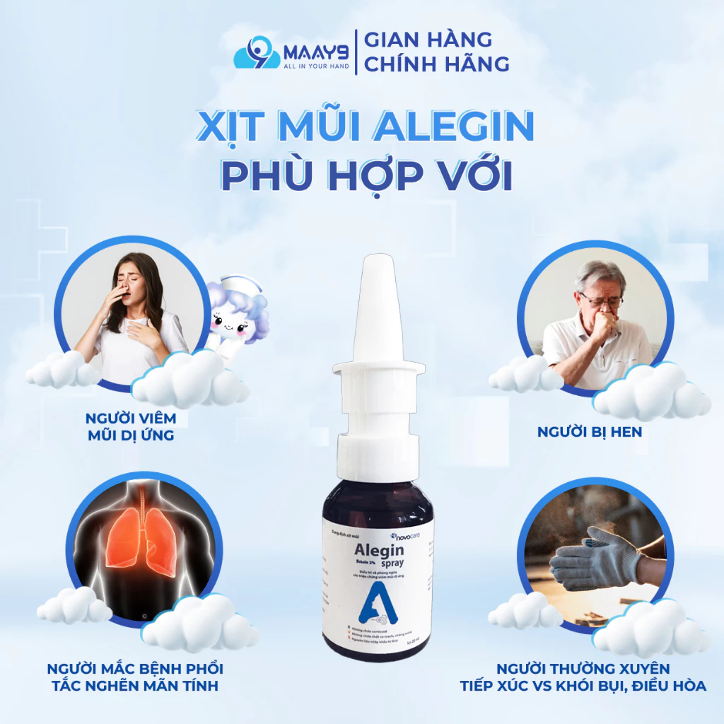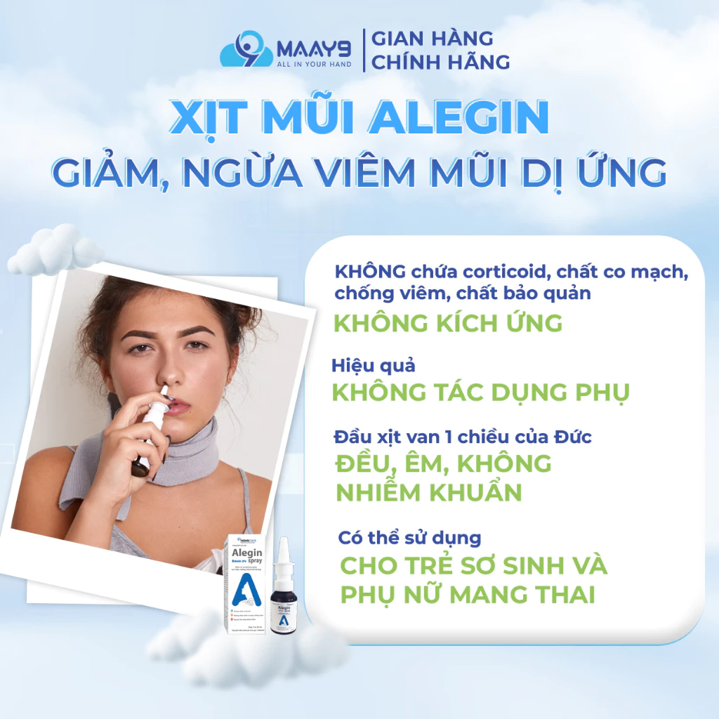 Xịt mũi Alegin giải pháp mới cho người bị viêm mũi dị ứng đặc biệt viêm mũi dị ứng thời tiết và người sống trong môi trường ô nhiễm khói bụi.