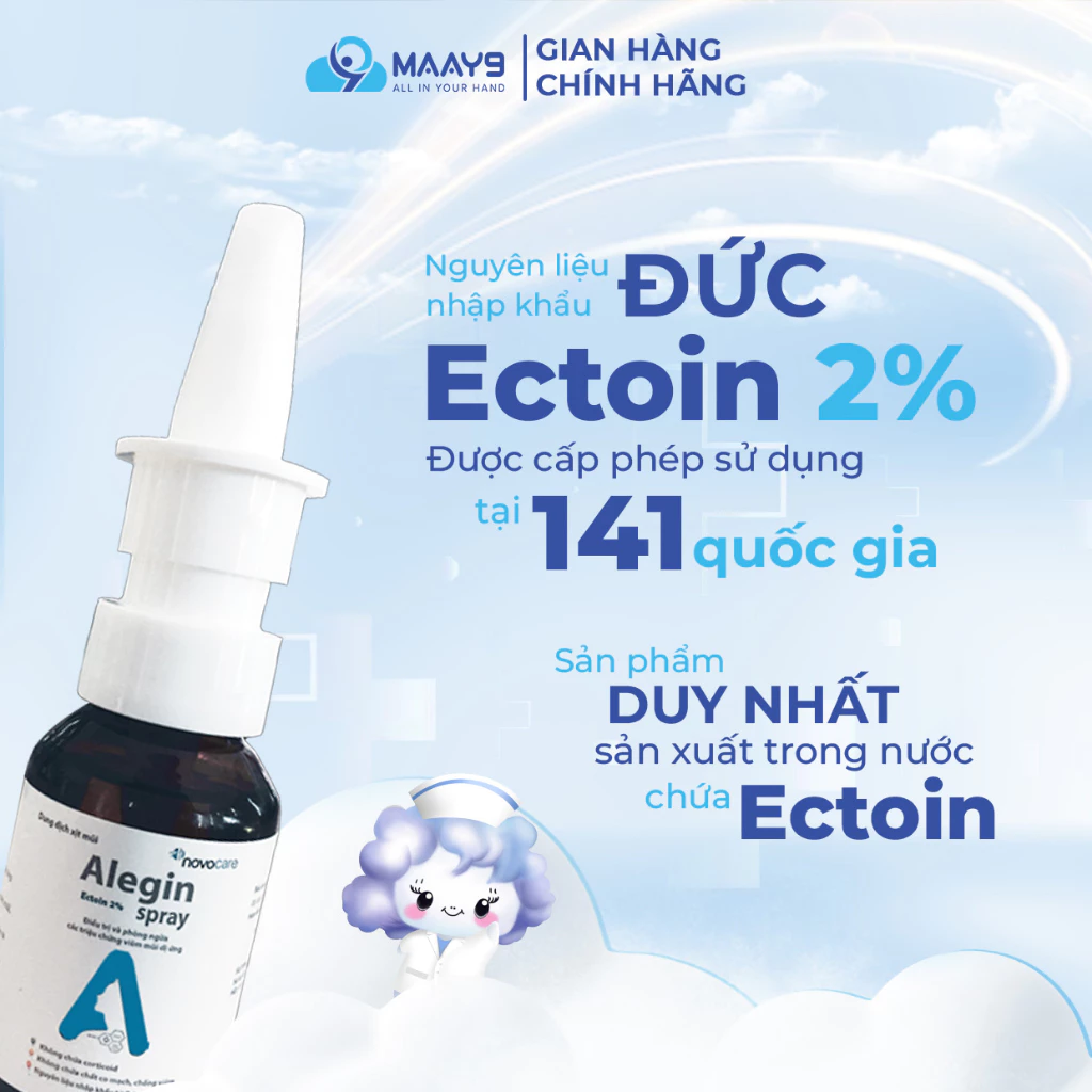 – Xịt mũi ngừa viêm mũi dị ứng Alegin là sản phẩm đầu tiên sản xuất trong nước chưa hoạt chất Ectoin, không gây kích ứng mũi.